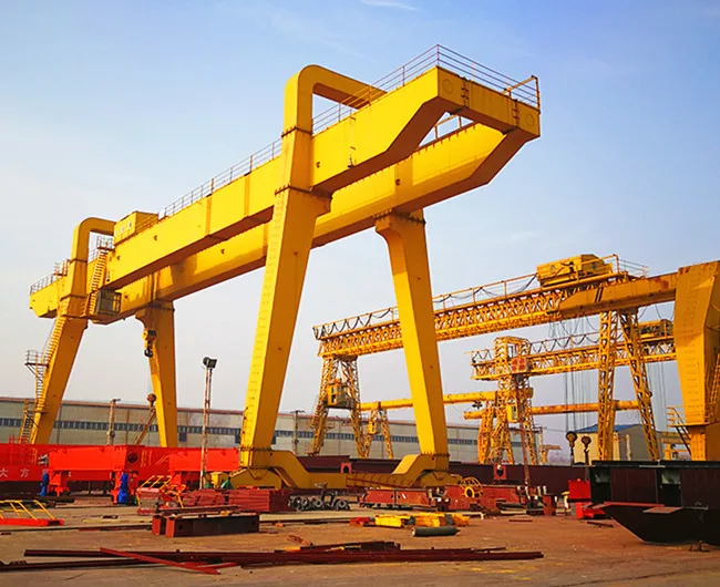 Double Girder Gantry kraanakonksudega kasutatakse laialdaselt ühiseid tõste- ja mahalaadimistöid. Selline kraana koosneb sillast, tugijalgadest, kraana reisiorganist, kärust, elektriseadmetest, tugevast tõstevibust. Raam võtab kasutusele kasti tüüpi keevitusmehhanismi. . Toidet varustatakse kaabli või liugjuhtmega. teie valikul on erineva võimsusega topelttala gantry kraana vastavalt teie erinevale kasutusele.